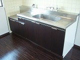 | キッチンの入れ替えは高額の為、キッチンパネルにダイノックシートを貼り、水回りのイメージを変更しました。 |